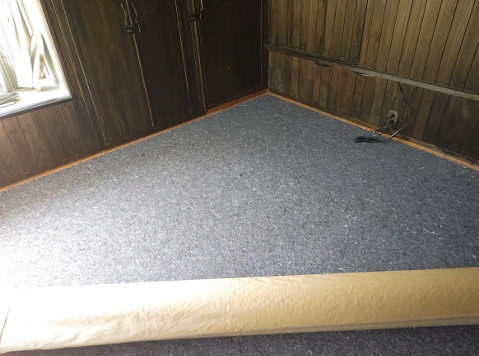 絨毯の下にクッション材となるフェルトを敷き、歩き心地を良くするとともに床材を保護します。